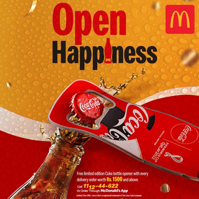 Get free limited edition Coke bottle opener with every delivery order worth Rs. 1,500 & above.
